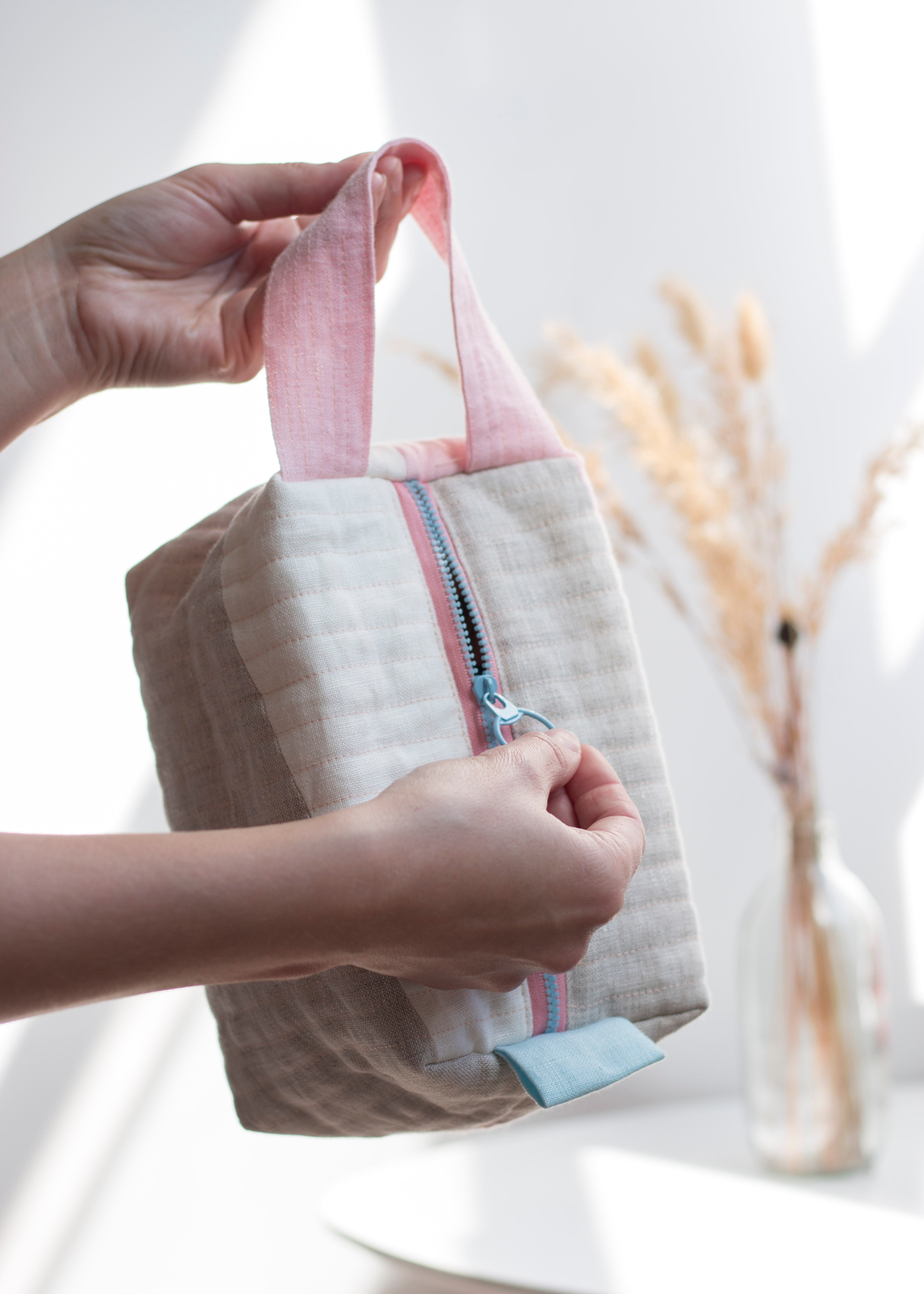 With its quilted exterior, handy handle, and cozy cotton lining with padding, it keeps your essentials organized and protected. Ideal for cosmetics, toiletries, or small accessories, it's as practical as it is stylish.