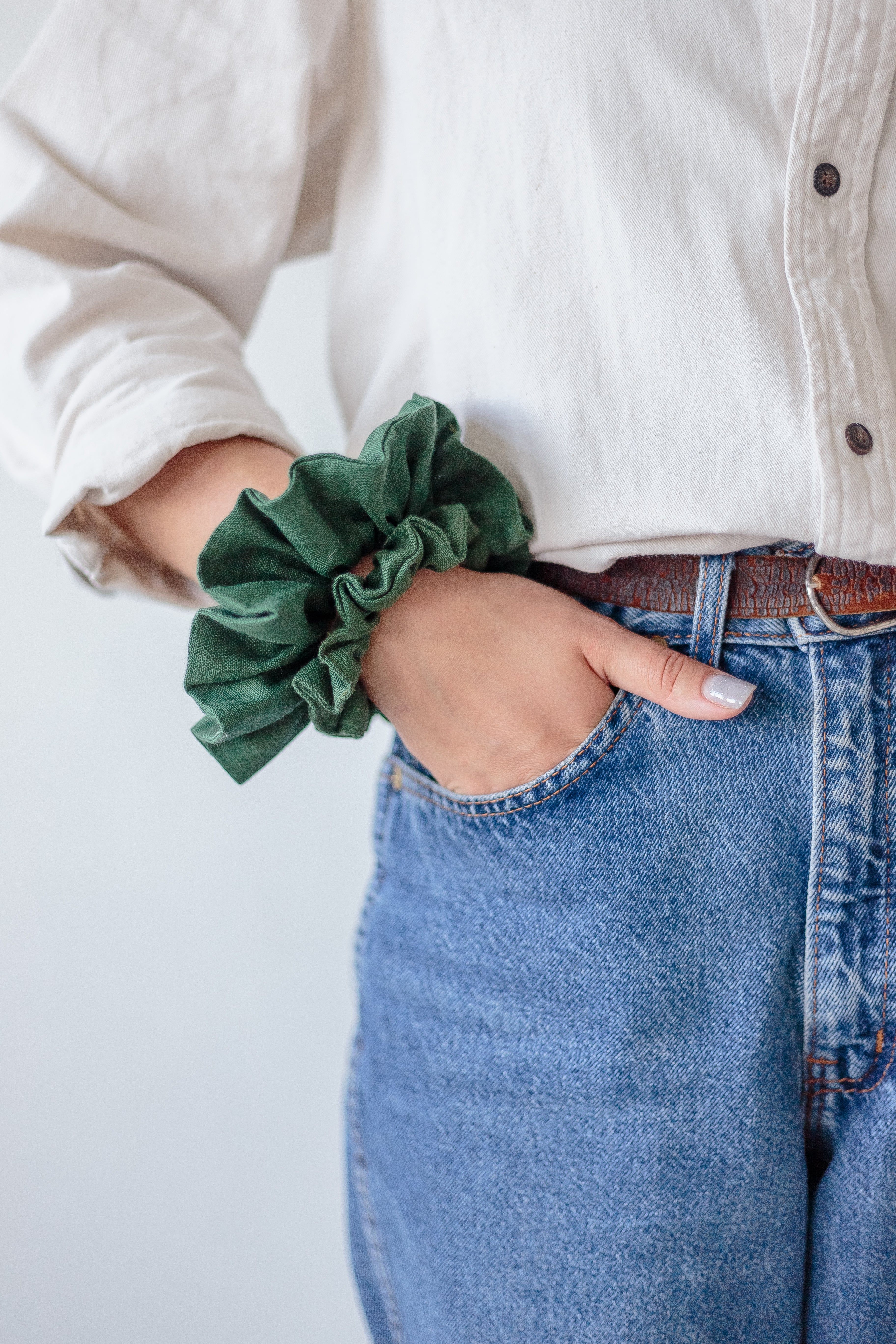 Their unique scrunch design adds a touch of casual elegance to any hairstyle, making them perfect for both everyday wear and special occasions. Available in an array of earthy tones and subtle patterns, our linen scrunchies effortlessly complement a wide range of outfits. Whether you're tying your hair up in a loose bun or creating a playful ponytail, linen scrunchies provide a chic and functional accessory that effortlessly elevates your hair game.