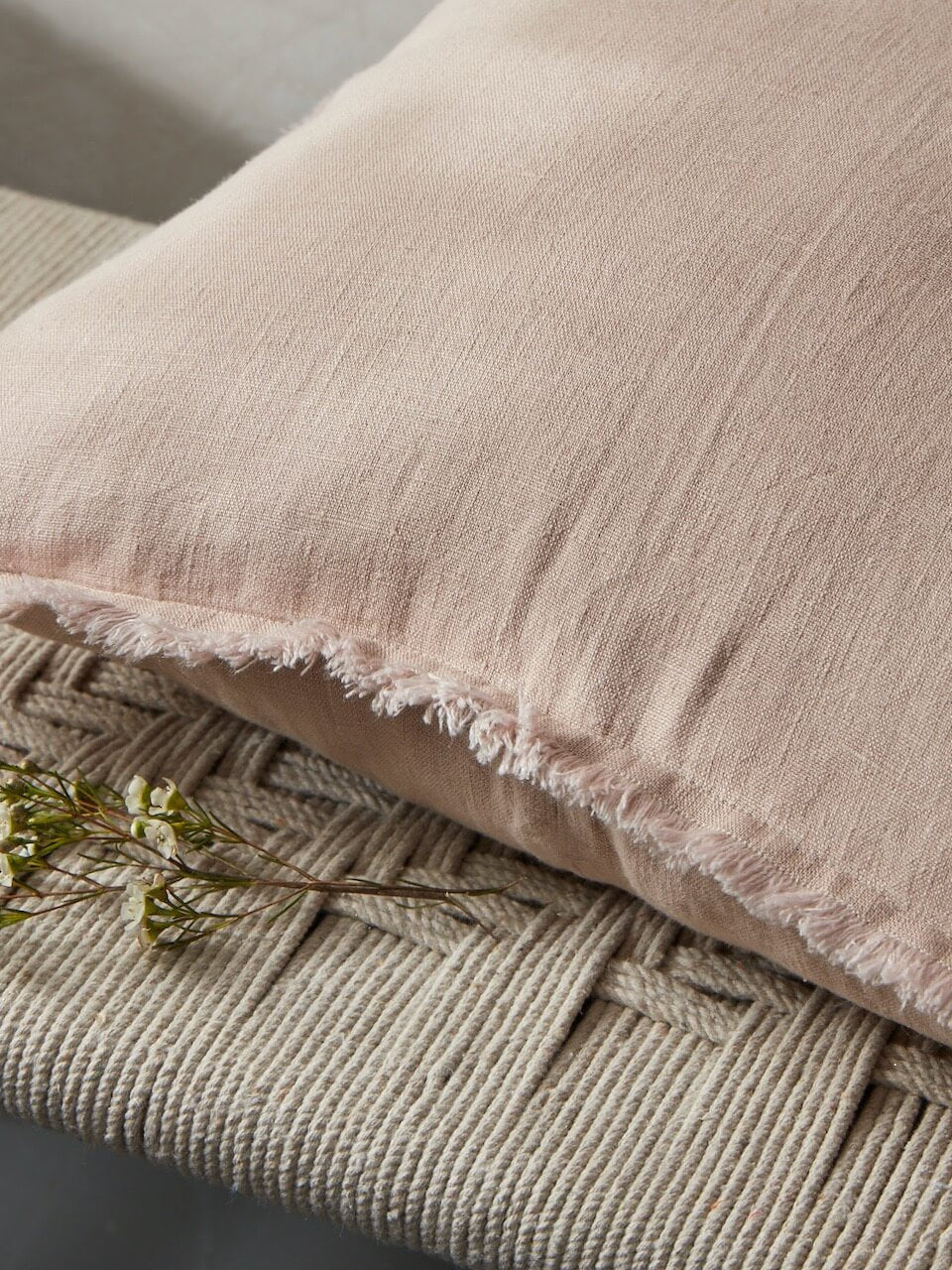 We love linen for its relaxed natural properties. A wonderful way to style your sofa or bed, in a lovely dusky blush pink tone they make a fabulous fresh layer for your cushion collection. Finished off with a lovely informal quality fringe this is a high quality linen cushion.