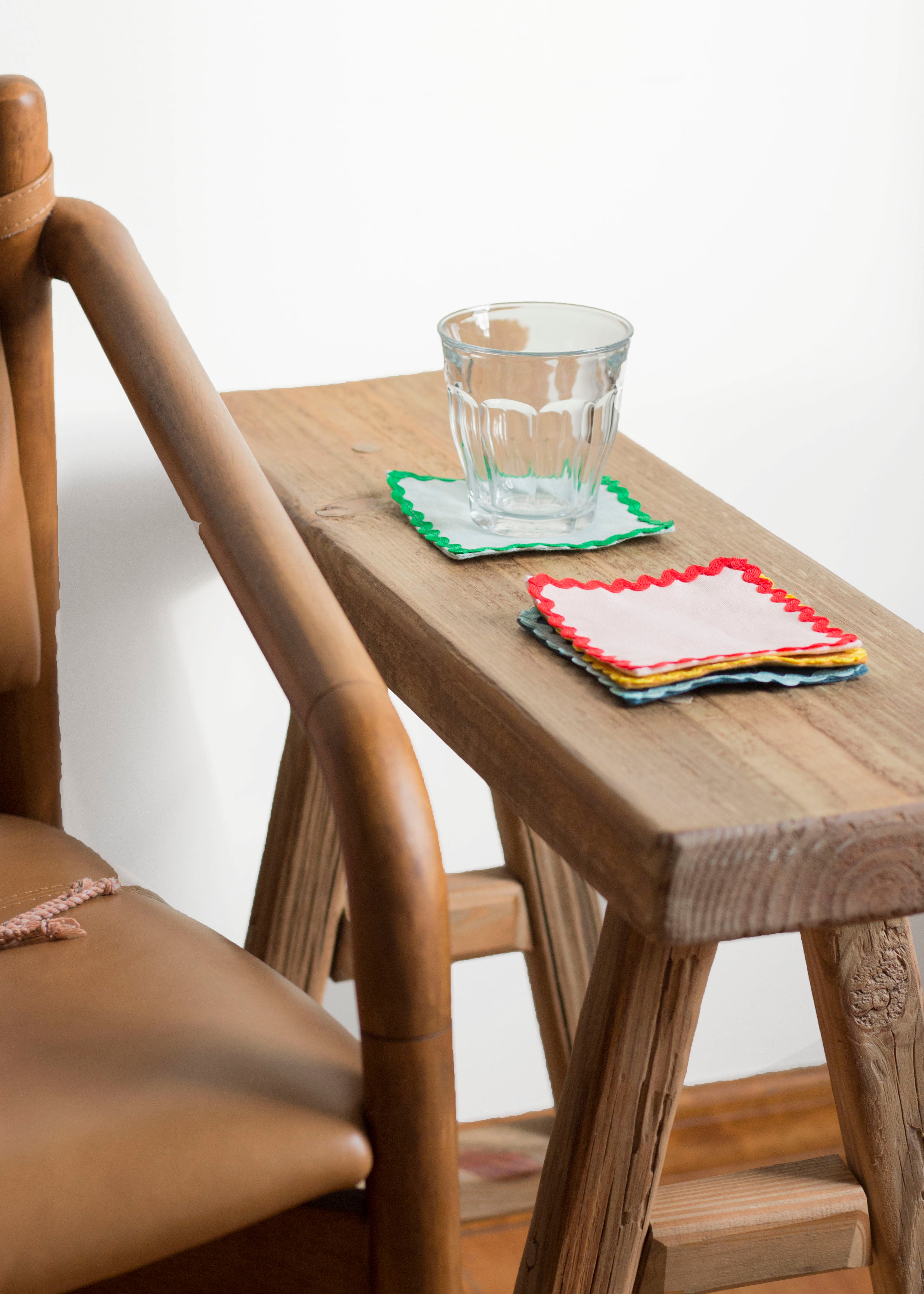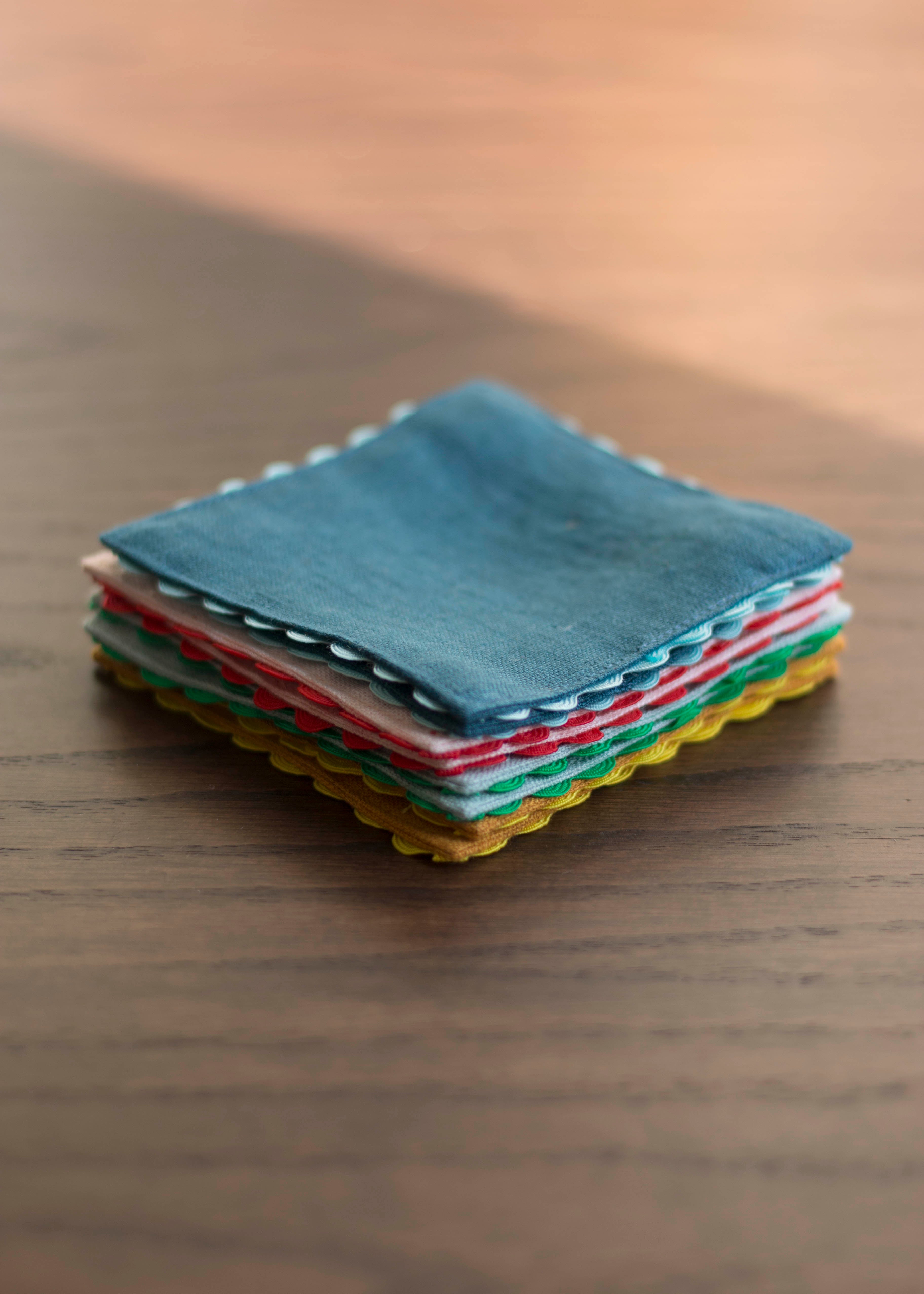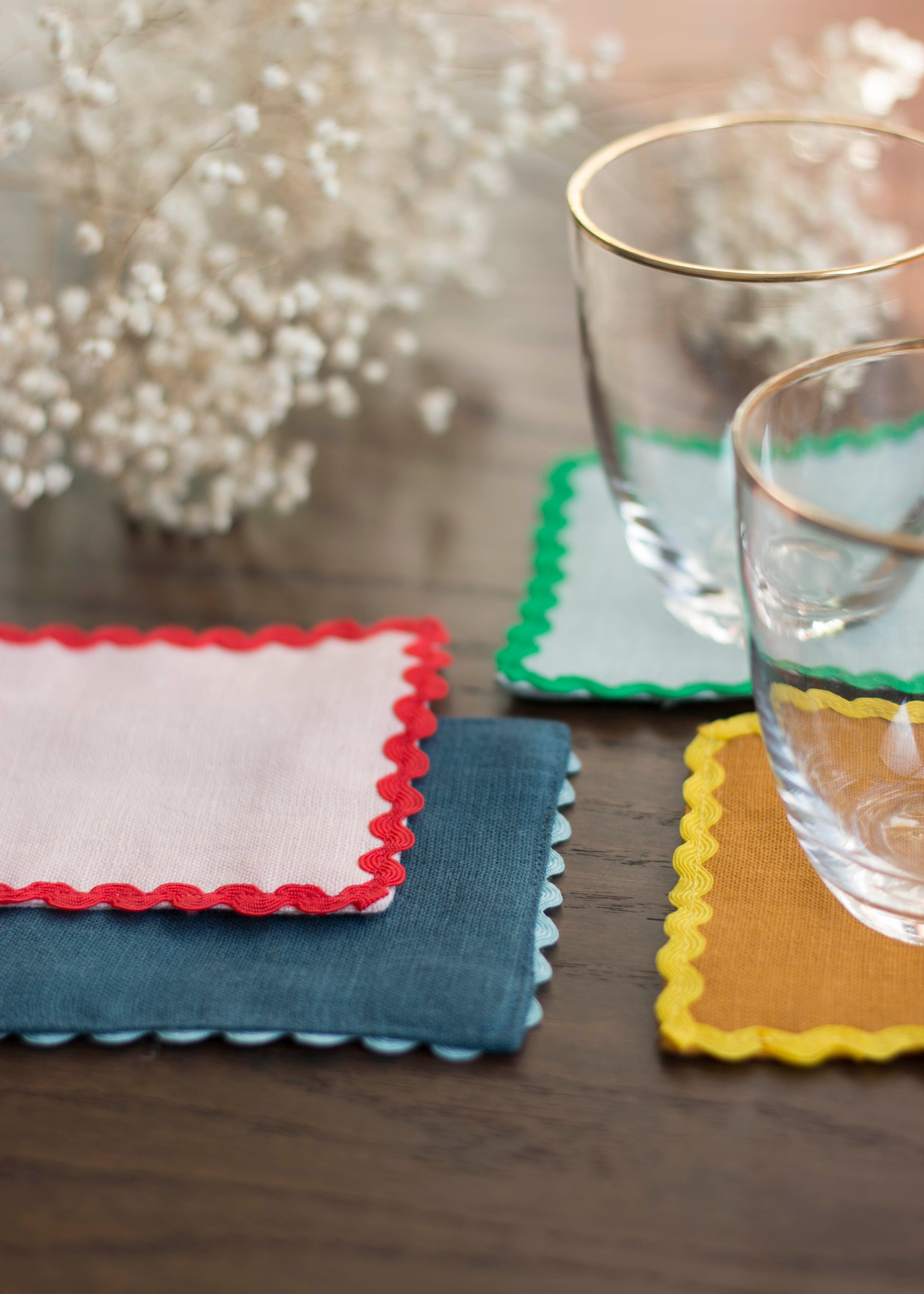 Mixed Linen Coasters With Multicolor Rick Rack Trim