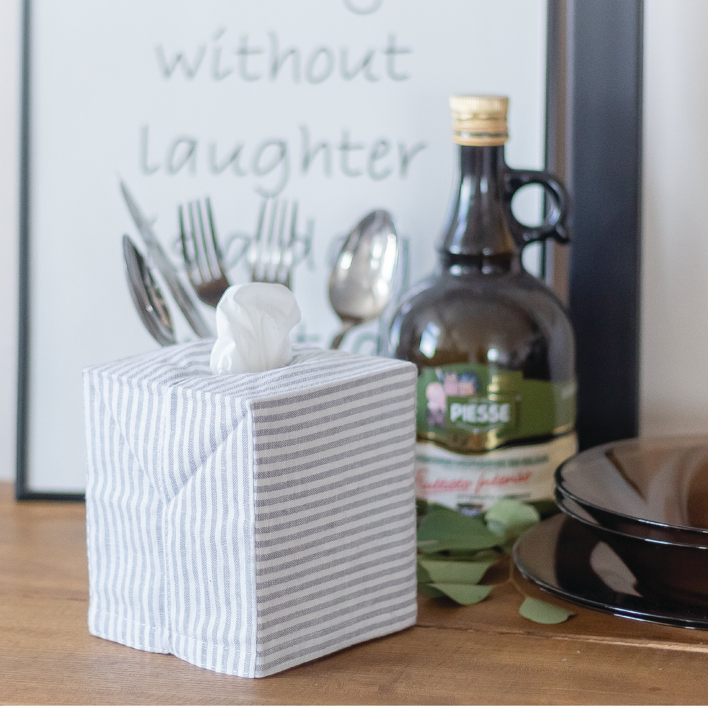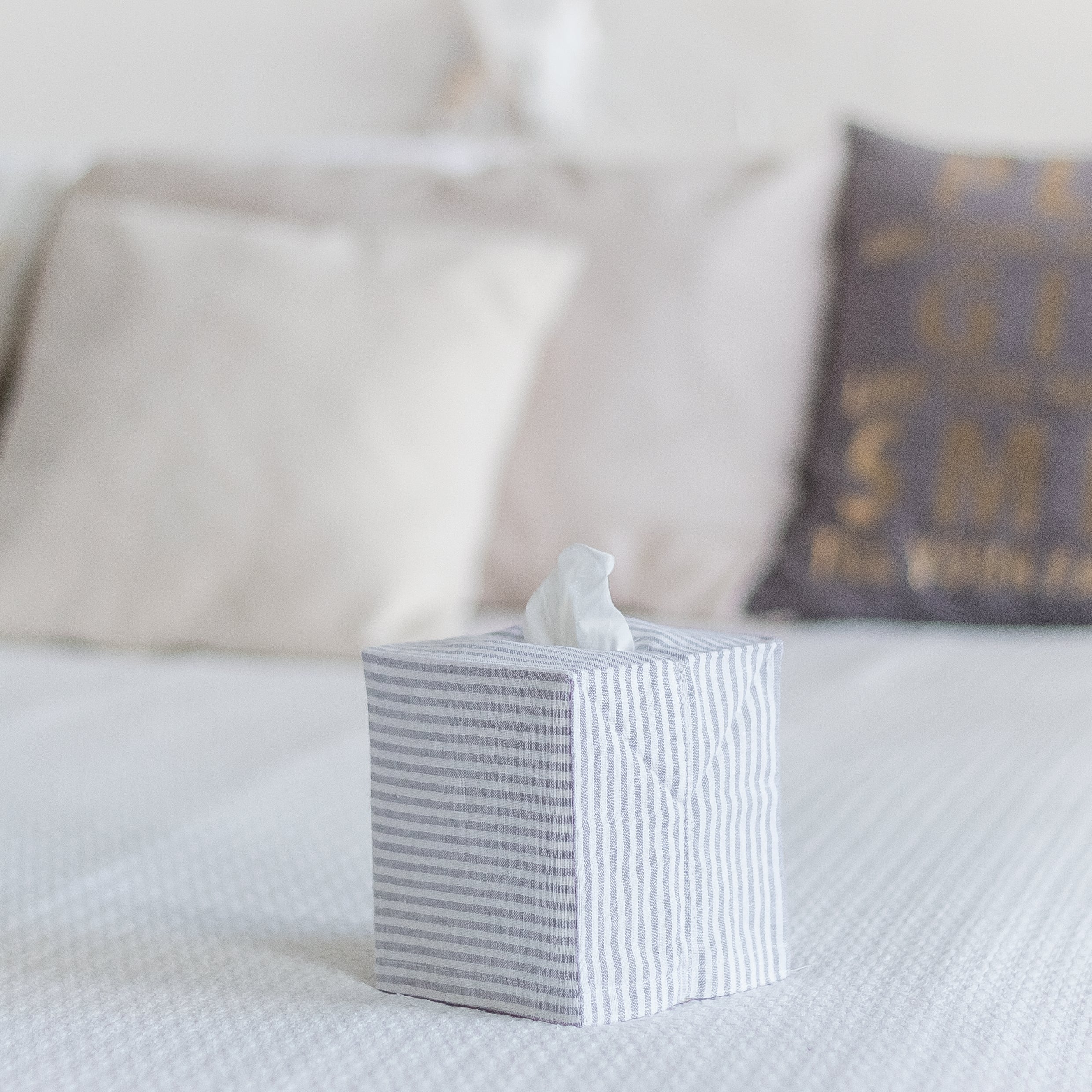 Grey Stripes Linen Tissue Box Cover